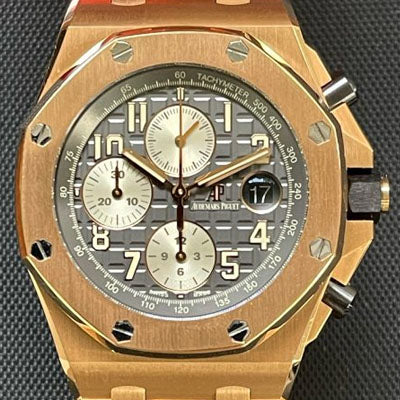 オーデマ・ピゲの人気モデルであるロイヤル・オークをよりスポーティにブラッシュアップしたモデルです。カーボンやチタン、アラクライト602などの革新的な素材を採用し、新たなモデルが作り出されました。大胆かつ迫力あるデザインでありつつ、最上の使用感を求めた、人気の高級スポーツウォッチです。