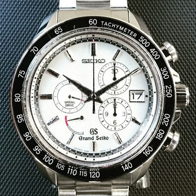 グランドセイコー初のクロノグラフ、 ”スプリングドライブクロノグラフ”です。 1969年自動巻クロノグラフ用としてセイコーが世界で初めて採用したもので、世界で最も信頼性の高いクロノグラフを目指して開発されました。