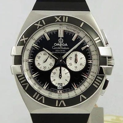高精度のコーアクシャル・エスケープメントを搭載しています。 機能性の高さ、コンステレーションならではのベゼルに配置されたツメやピラミッド型のインデックスを備えた美しいデザインです。 “機能”と“デザイン”、この2種の突出した才を備えるがために、同モデルには「ダブルイーグル」という名称が付けられました。 オメガの中でも上位モデルの時計です。