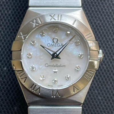 コンステレーションとは星座を意味します。 文字盤6時位置にある星と、裏蓋の天文台がコンステレーションの色気をかもし出しています。コンステレーションはオメガの人気モデルです。