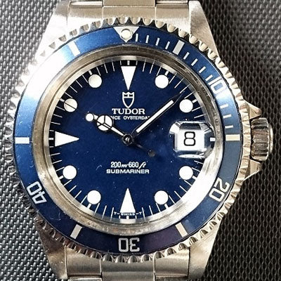 イカサブをはじめミニサブなど数多く種類があるがチュードルサブ系は青文字盤の人気は高いです。特に保証書等の付属品があると価格も高く、逆にリダン文字盤も多いせいか保証書がないと大きく価格が下がるケースが多いので要注意です。