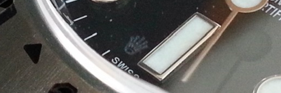 クリスタルの6時側に刻印された王冠マークの透かしは、1999年にヨットマスターモデルに採用されて以降2000年新型デイトナ、2003年からすべてのロレックスに透かしが入ったといわれています。