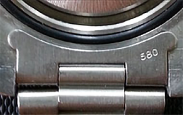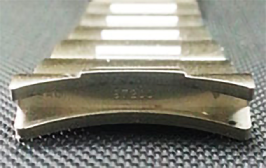 時計本体に付けてあるバネ棒を外してブレスレットを外すと、時計側面の上下(12時側、6時側)にリファレンスナンバー、シリアルナンバーが刻印されているかを確認します。