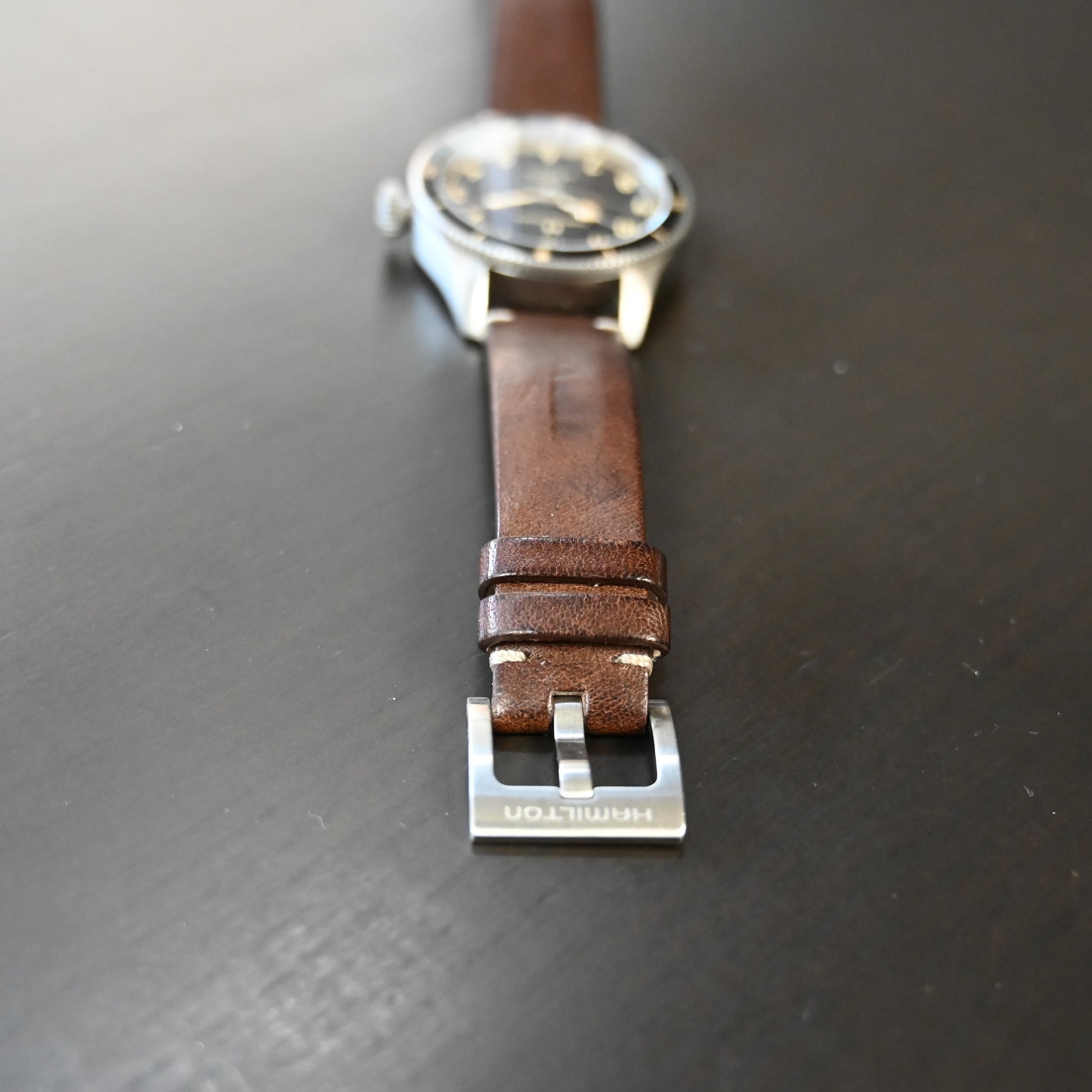 ハミルトンで最も人気のカーキ アビエーション 凹凸のある文字盤 昔のハミルトンロゴ ニヴァクロン製ヒゲゼンマイ搭載の80時間パワーリザーブ 高スペックで格安の設定は かなりコスパの高いモデル 日差は平置きでプラス5秒程と好調 大きな傷もなく美品 ベルトは若干使用感はありますが、まだまだ使えます。