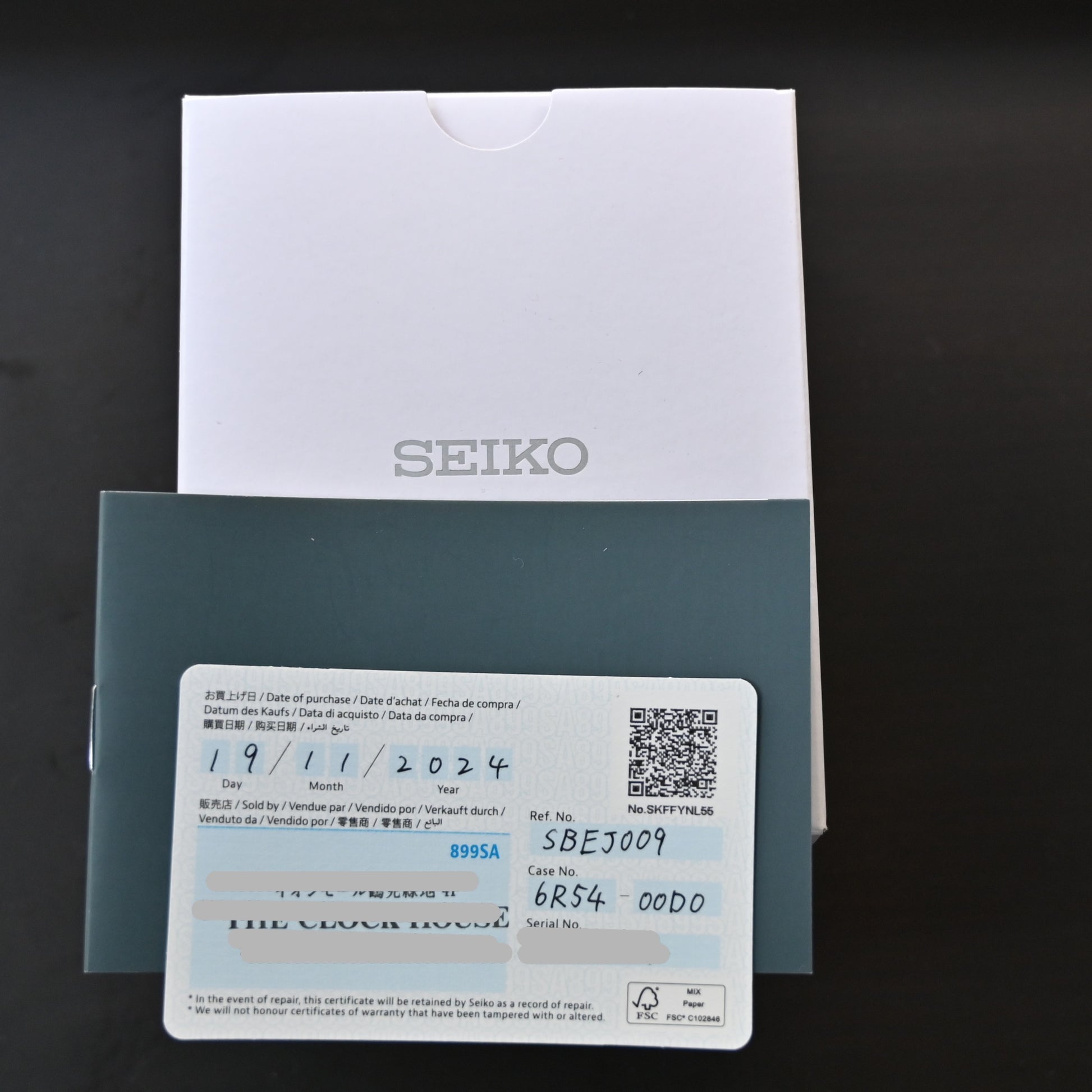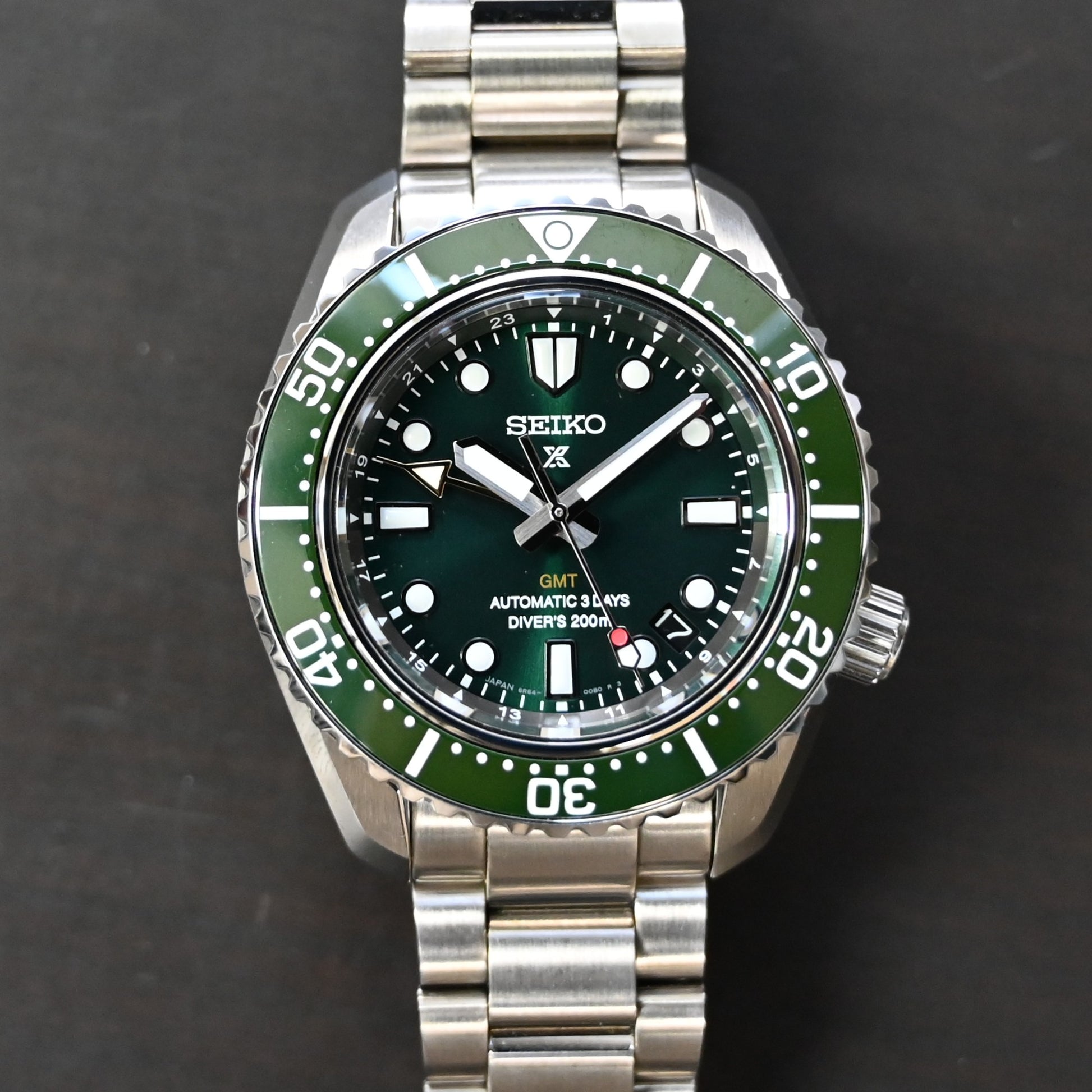 セイコープロスペックス人気の高い ダイバーズ 1968 ヘリテージ GMTセイコーグローバルブランドコアショップ専用モデル グリーン文字盤 キャリバー6R54搭載 保護シール一部ついたままのの未使用品 保証書2024年11月ですが、メーカー保証は3年間ありますので 安心して使えます。またセイコーキャリバーは個体差がある場合がありますが、こちらのキャリバー問題なく日差もプラス7秒程となります。ブレス調整は無料で致します。説明書は、セイコーのペーパーレス化の一環として2024年2月からwebから閲覧するようになっております